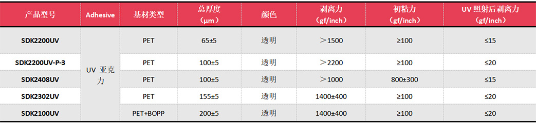 ? 采用特殊设计和配方,在受到紫外光辐射后可自动从粘贴表面脱离