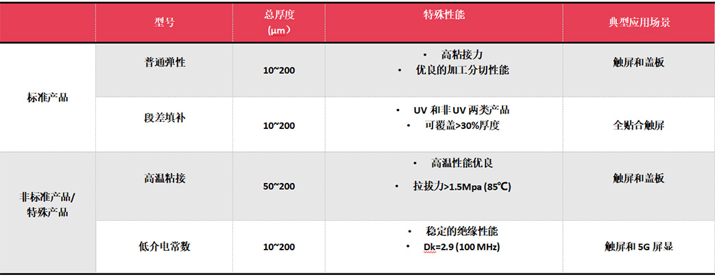 应用阐述:OLED显示器组装、电阻式触摸屏、电容式触摸屏、面板、ICON及玻璃的贴合