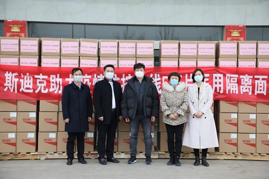 2月21日,江苏尊龙凯时新材料科技股份有限公司首批生产的医用隔离面罩完成包装出库,全部捐献给湖北黄石疫情防疫一线人员使用。泗洪经济开发区管委会马勇主任、县红十字会刘玉琛常务副会长、公司金闯董事长等领导出席了捐赠仪式。