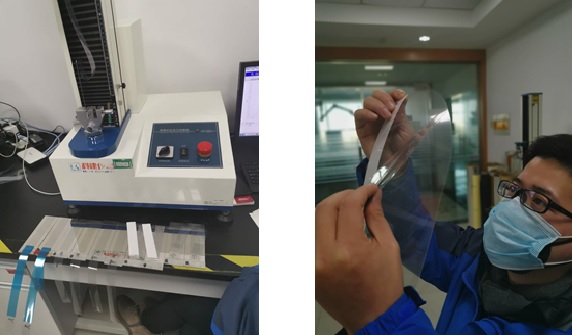 新冠肺炎疫情来势汹汹,各地区医疗防护器材短缺,公司在董事长金闯的带领下,迅速召集技术、生产、质量等专业人员组成工作小组,针对医用隔离面罩的研发、生产、检测等问题进行紧急攻关。公司充分发挥在复合涂层功能膜材料的技术储备,成功解决了市面上常用医用隔离面罩面临的使用表面发雾等问题,通过打样得到具有超透明、防雾功能的医用隔离面罩。与此同时,通过市场监管系统开通的防疫物资生产审批绿色通道,特事特办,仅用两天时间迅速完成医疗器械生产备案和医用隔离面罩产品备案。