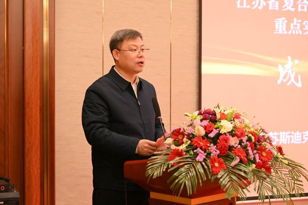 省科技厅科研机构处副处长李汉中,泗洪县委副书记、县长杨云峰到会致词,宿迁市科技局局长王峰与董事长金闯共同为重点实验室揭牌,董事长金闯向各位学术委员颁发了聘书,副总经理华佳明主持了这次大会。